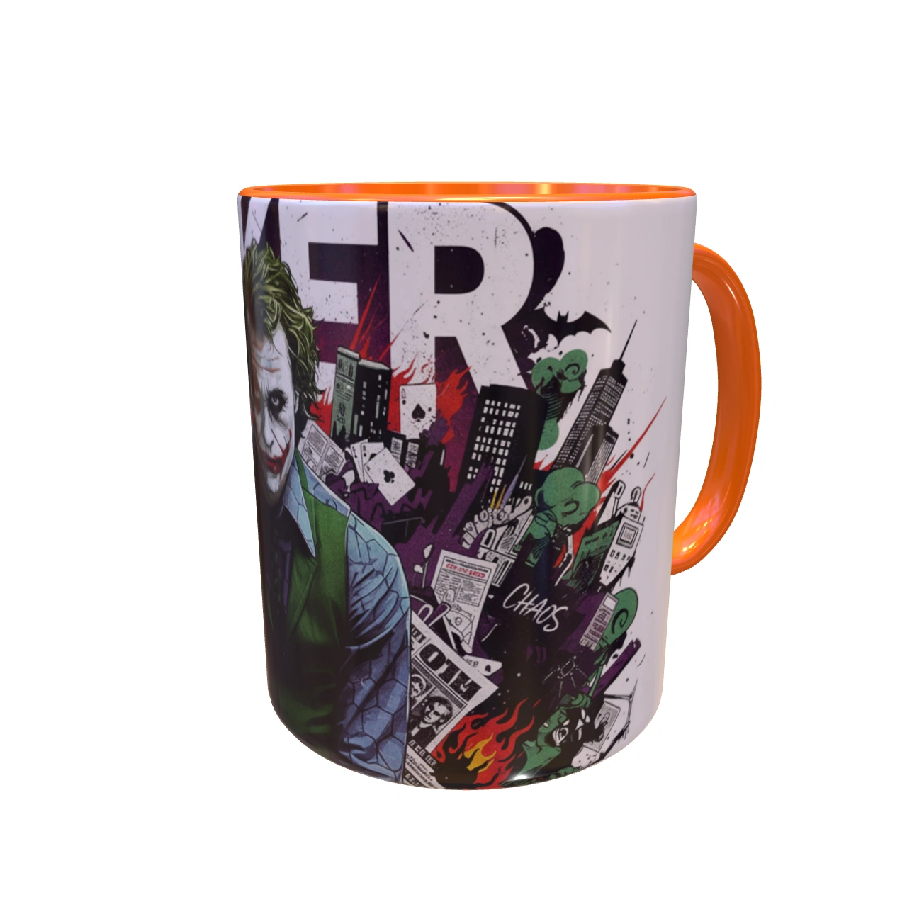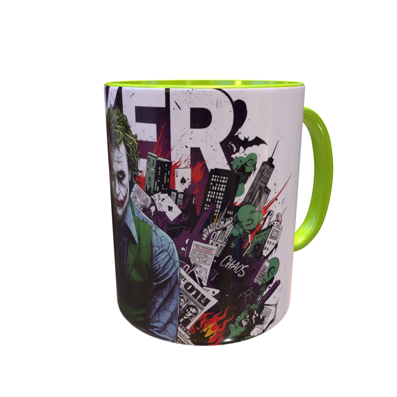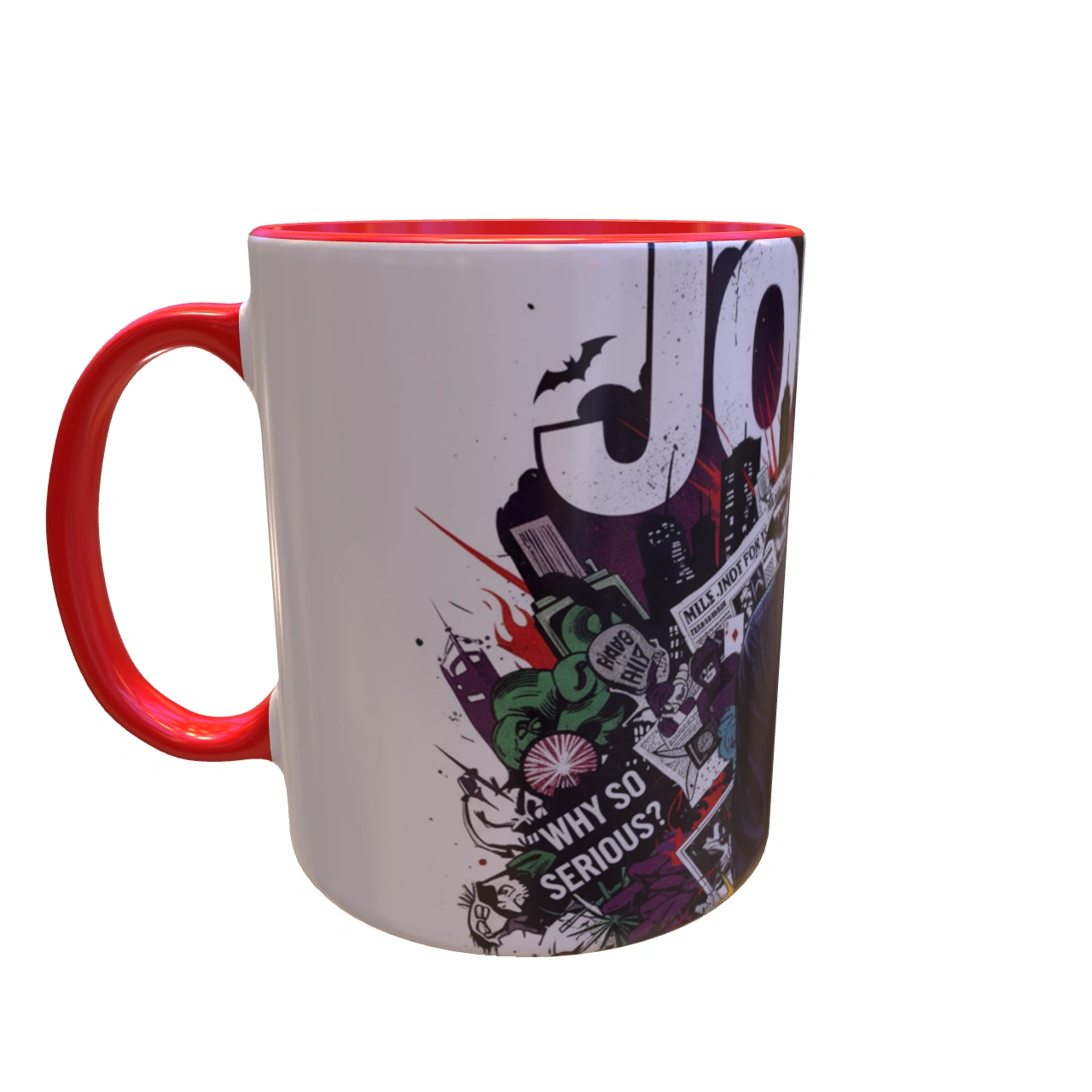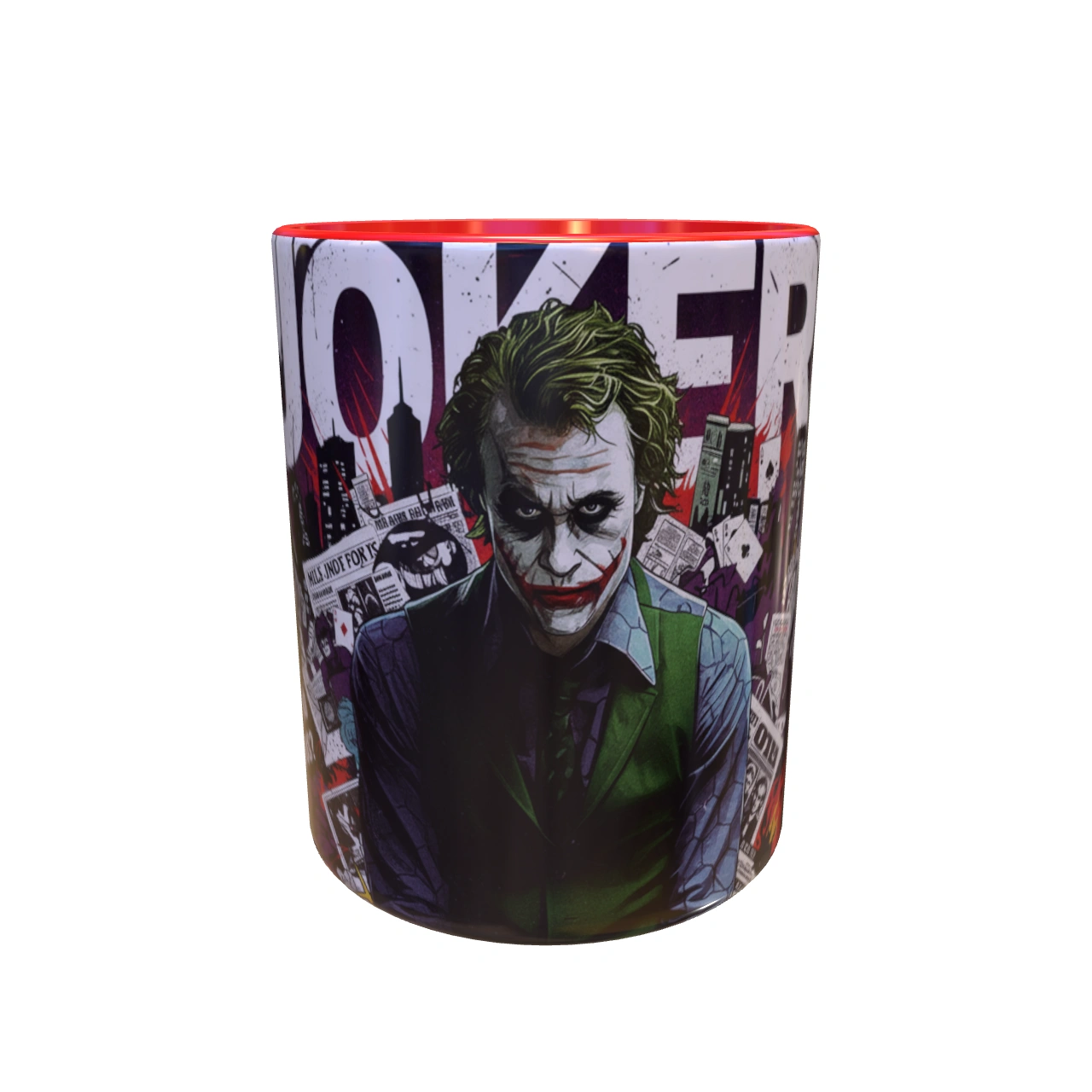 ماگ جوکر شوالیه تاریکی برای کسانی است که قوانین را دوست ندارند، از هرج و مرج لذت میبرند و همیشه لبخندی مرموز بر لب دارند. با طراحی فوقالعاده پرانرژی و جسورانه از جوکر با بازی هیث لجر، که در پسزمینهای شلوغ از کارتهای بازی، ساختمانهای گاتهام و کلمه بزرگ “JOKER” قرار گرفته، ماگ جوکر فریاد میزند که “چرا اینقدر جدی هستی؟”
